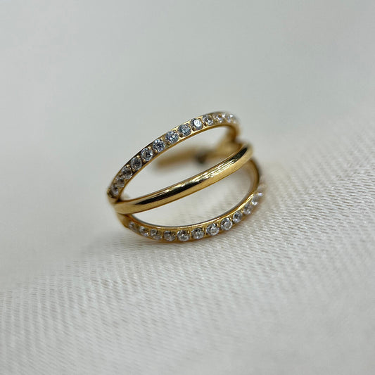 Piercing Argola PVD Gold Tripla Cravejada- Titânio