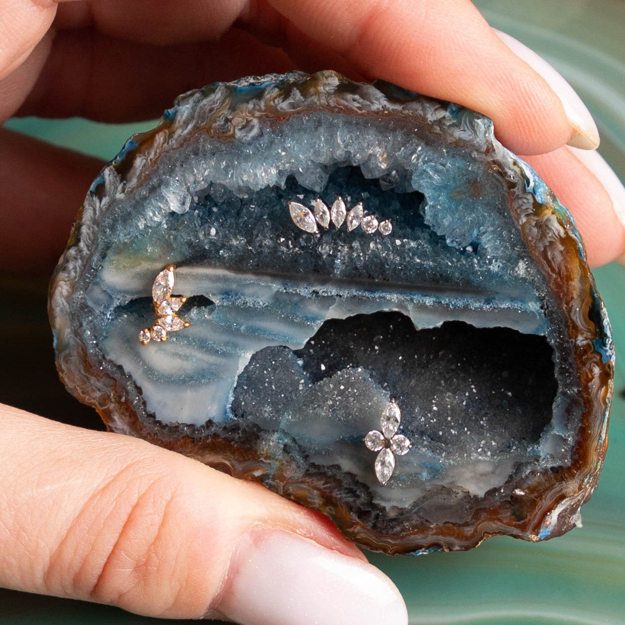 Use no tragus ou forward helix para um destaque delicado, ou no conch, flat e lóbulo para criar composições sofisticadas, femininas e atemporais.